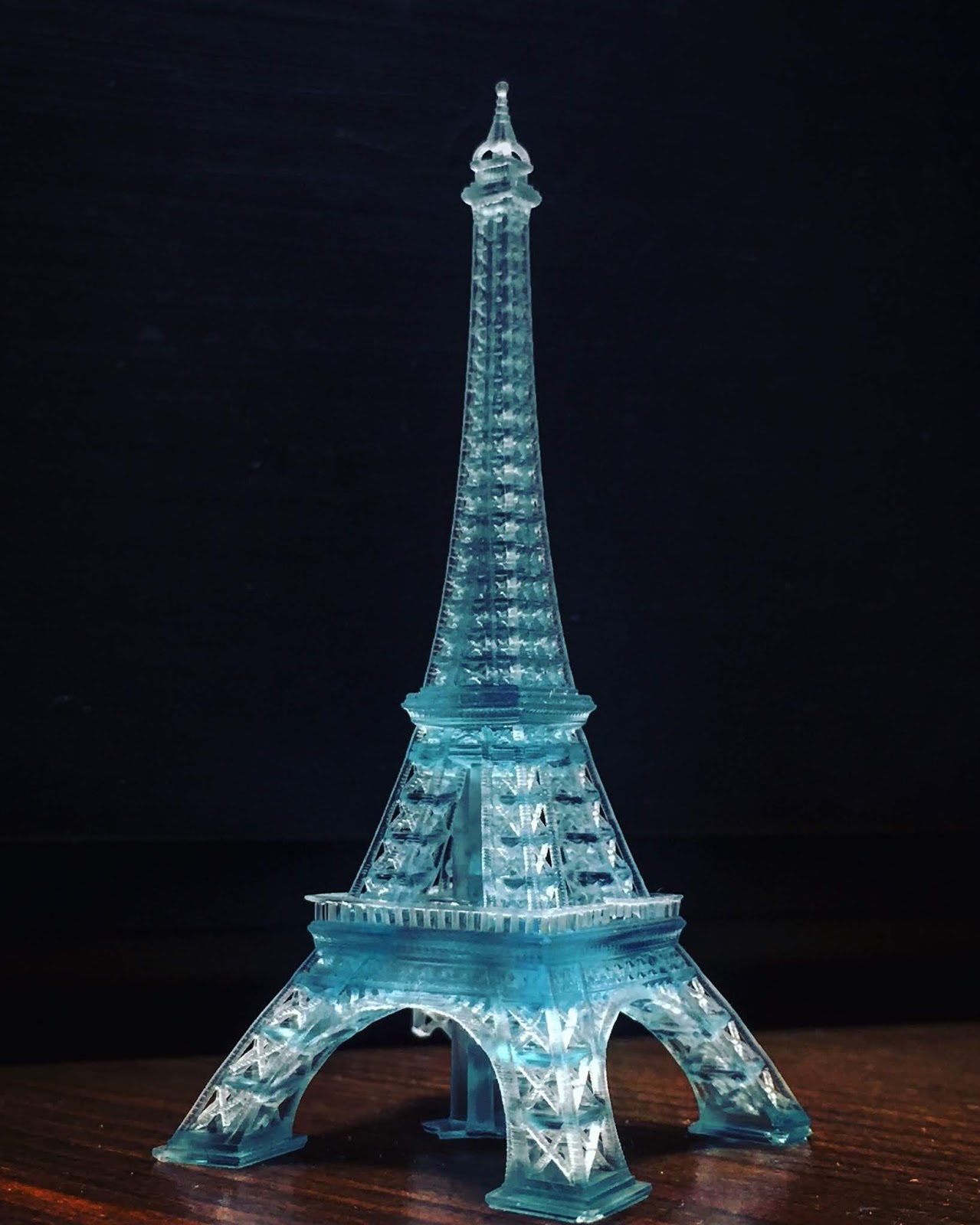 | 直置きで造形したのですが、4カ所の足を剥がすときに力を入れずぎて足が一本崩壊。 実は向こう側の足は有りません。見えないように撮影しています(^_^; |